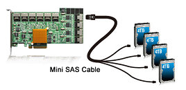 Each device port supports up to four SATA hard drives: A single Rocket 750 is capable of supporting up to 40 4TB 6Gb/s SATA disks, for an unprecedented 160TB of directed-attached storage. The industry-standard SFF-8087 Mini-SAS connectors streamline installation, upgrade and maintenance procedures and ensure maximum compatibility with industry standard storage cabling, accessories & chassis hardware.