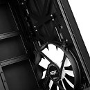 The advantage of such a flexibility lies in the ability to offer the best possible air flow and plenty of space for radiators. The impressive number of spaces for such cooling units includes 360 mm mountings in the top and the front, while you are also able to place a third unit of 280 mm size in the floor of the chassis. The NZXT H630 is alternatively also able to take two 200 mm cooling fans in the front of the chassis, one of which already comes pre-installed out of the box.