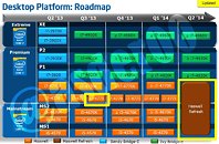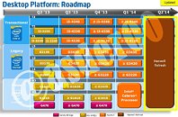According to CPU World staff, who, by appealing to an unnamed secondary source, managed to confirm the validity of an earlier leak, we are now looking at Intel's desktop roadmap for the following twelve months. The slides reveal the Q3 launch of Intel's Ivy Bridge-E chips, the Core i7-4820K, i7-4930K and i7-4960X comprising the lineup. The new Extreme chips will make use of the existing X79 platform. Also in Q3 the Premium line will receive a new product, the Core i7-4771, which we do not know in what way differs from the currently available Core i7-4770, but a judicious appeal to wild speculation could point out an upgraded IGP.