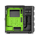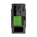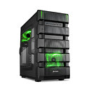 The Sharkoon BD28 is a tailored gaming ATX case in a brawny design, which is available in the exterior colors black and gunmetal. With the black version, the colors red, blue or green can be selected for the interior finish with the front LEDs and case fans also illuminating in the corresponding color. The gunmetal edition is available with two blue LED fans and a black interior finish. The provided acrylic side panel provides insight into the inner workings. Thanks to the issued side panels and its 235 mm width, installation of very large tower coolers with a maximum height of 179 mm is ensured. Extra-long graphics cards of up to 415 mm can also be installed due to its modular hard drive management. While fully equipped with the maximum number of 2.5" hard drives/SSDs the case still offers enough space for VGA cards up to 325 mm.