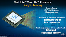 Knights Landing will be available as a standalone processor mounted directly on the motherboard socket in addition to the PCIe-based card option. The socketed option removes programming complexities and bandwidth bottlenecks of data transfer over PCIe, common in GPU and accelerator solutions. Knights Landing will include up to 16 GB high-bandwidth, on-package memory at launch - designed in partnership with Micron - to deliver five times better bandwidth compared to DDR4 memory, five times better energy efficiency and three times more density than current GDDR-based memory. When combined with integrated Intel Omni Scale Fabric, the new memory solution will allow Knights Landing to be installed as an independent compute building block, saving space and energy by reducing the number of components.