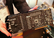 ASUS displayed a huge new graphics card based on the AMD Radeon HD 6970 GPU. The EAH6970 DirectCu is perhaps the largest among the company's graphics cards that use a "direct-copper" GPU cooler in which heat pipes make direct contact with the GPU die. Such is the size of the cooler, that the card requires three expansion slots in your system. To make optimal use of the expansion brackets, ASUS wired out all TMDS links from the GPU, yielding a display connectivity consisting of two DVI and four full-sized DisplayPort 1.2 connectors.