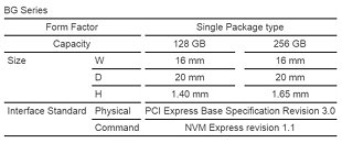 The "BG Series" SSDs on reference display will be products under development. Utilizing Toshiba's cutting-edge packaging technology applied in products like e・MMC, it is the world's first PCI Express single package SSD, available in capacities up to 256 GB in a 16 mm x 20 mm x 1.65 mm BGA package. Also to be showcased will be a reference display of the world's smallest removable module type SSD, which integrates the BGA single package SSD on a single-sided form factor.The new SSDs incorporate PCI Express, a high speed serial I/O interface for PCs, as physical interface and NVM Express optimized for SSDs as command interface.