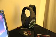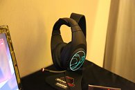 Ozone introduced a new premium gaming headset this Computex, the Ekho H80 Spectra. Featuring a large around-the-ear design with oval cans (a la Sennheiser G4ME). The stereo headset features a USB DAC with a virtual 7.1 surround DSP, a retractable microphone, and multi-color RGB LED lighting on the cans and the microphone, which is configurable using the included drivers and software for the DSP.