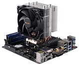 Due to its compact design, you can install the Pure Rock Slim even in tight spaces and with fully occupied memory banks. The dimensions of only 81.8 x 97.0 x 124.8 mm (L x W x H) and the asymmetric structure of the cooler ensures that neither the fan nor the fins block the RAM memory slots. The installation of the cooler is kept simple so it can easily be mounted even with minimal available space.