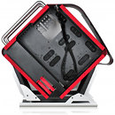 The SIRYUS chassis is the next level craftsmanship that will raise the bar in design and quality levels. The SYRIUS is a new open frame concept constructed of a 0.6mm SECC metal structure and 0.3mm aluminum panels. Sides closed by real tempered and tinted glass, forming a vibrant and astonishing eye-catcher. A total of six 3.5 inch or 2.5 inch multipurpose drive trays and 2 5.25 inch trays that allow opportune installation. Furthermore, the additional water cooling tray can hold different, thick size water cooling radiators and systems.
