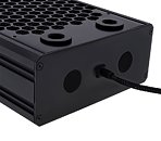 The radiator core is made completely of copper, as usual for Alphacool, and the outer parts are made of aluminium. Both sides of the radiator have a honeycomb grille, under which lies the radiator's truly innovative technology. The A.B.M., or air breaker mat, ensures even distribution of fresh air to the radiator. On normal radiators, the spaces underneath the fan hub and in the corners are dead spots with barely any air circulation. The A.B.M. works like a fan shroud and breaks up the incoming air so it circulates to every area. Because of the more even distribution of air, especially with slow-revolving fans, performance is greatly increased.Another focus during the development of the radiator was the general feedback from the modding community, who are frequently looking to paint their radiators. To this end, the aluminium frame is easy to remove and customize. The radiator's elegant and striking appearance is on a new level, not only optically but also haptically.
