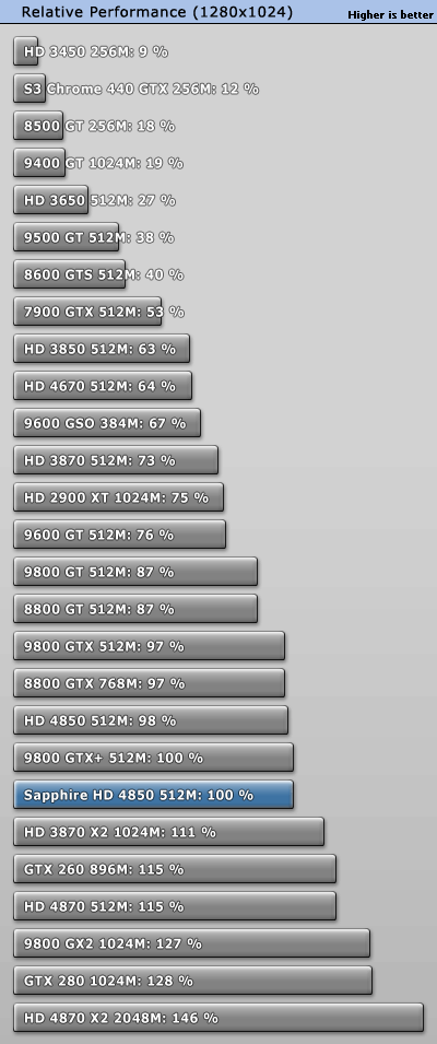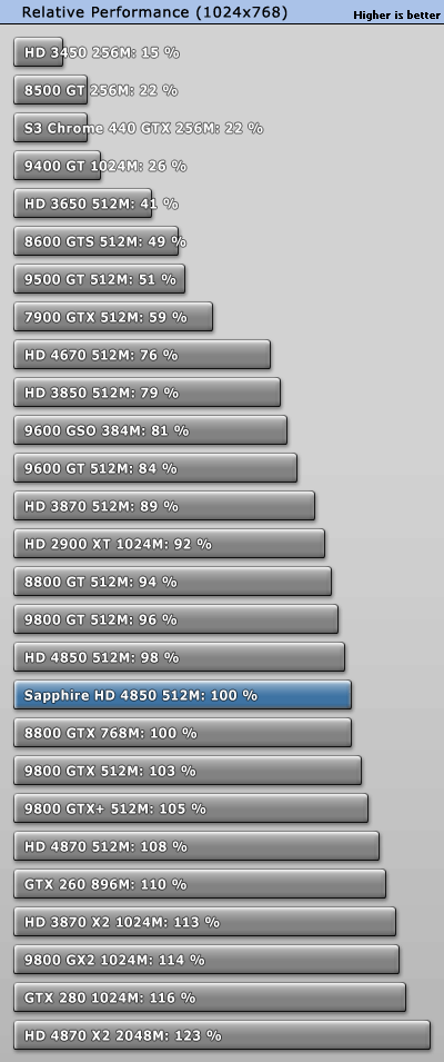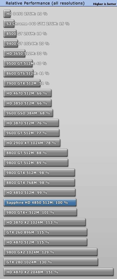 To create this graph we took all performance results of the four resolutions we tested, threw them together and calculated the relative performance of each card, compared to our review sample. In a fifth graph we also combined all tests in all resolutions to calculate the total relative performance of the review sample.
